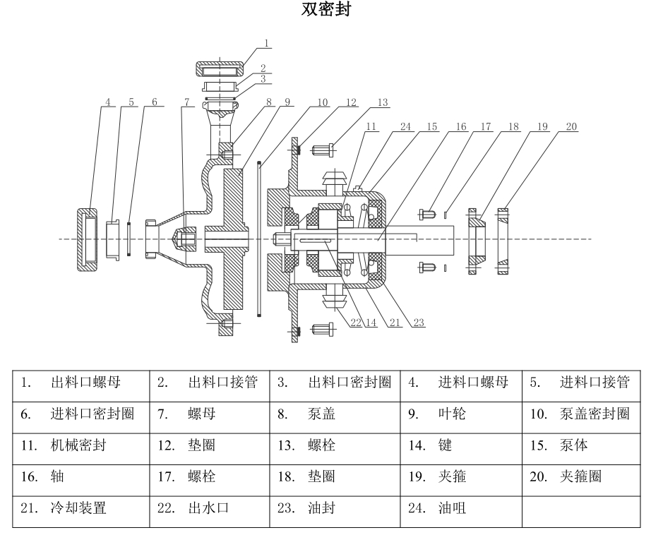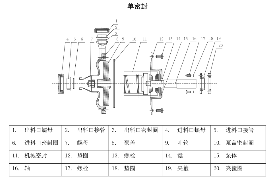 c.密封部分:由泵軸機械密封件、泵座(后蓋)0型橡膠密封圈組成;
